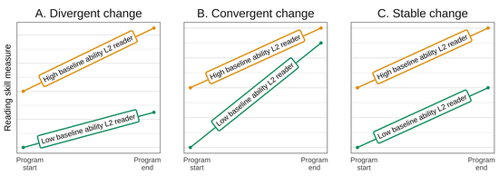 Does your incoming reading skill give you a developmental advantage in an academic English bridging program? This longitudinal eye-movement study of over 400 EFL students showed that if you enter a bridging program with stronger English reading proficiency, you may have a head start in your reading fluency and reading comprehension. However, students of all incoming reading ability levels develop reading fluency and comprehension at the same rate. This project was published in Bilingualism: Language & Cognition.