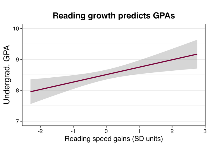 Reading speed change in a university bridging program predicts higher undergraduate GPAs.The big idea